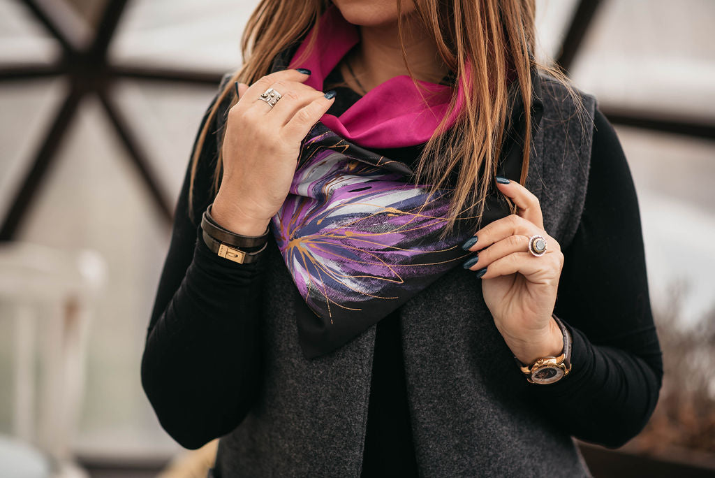 Medvilninė skara "Gėlių šokis", tai rankomis tapytas vienetinis aksesuaras, kuris suteiks elegantiškumo, įndividualumo bei pabrėš Jūsų unikalu stilių. Išskirtinio dizaino skara puikiai tinka tiek kasdieniam naudojimui, tiek ir ypatingoms progoms. Dvigubas medvilnės sluoksnis suteiks papildomos šilumos.